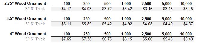 The ornaments are 3/16″ thick